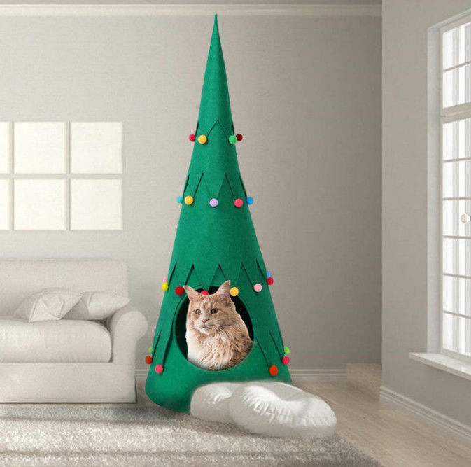 Dieser Weihnachtsbaum mit Katze, die Betten formen, ist, Weihnachtsbaumform, kann ein sehr warmes Gefühl zu Ihrem Haus holen sehr einzigartig. Das KatzenWeihnachtsbaumbett wird vom Filz gemacht, welches Katzenweihnachtsbett es einfach zu säubern und zu säubern macht. Pets2go, geben Ihrem Haustier ein süßes Haus.